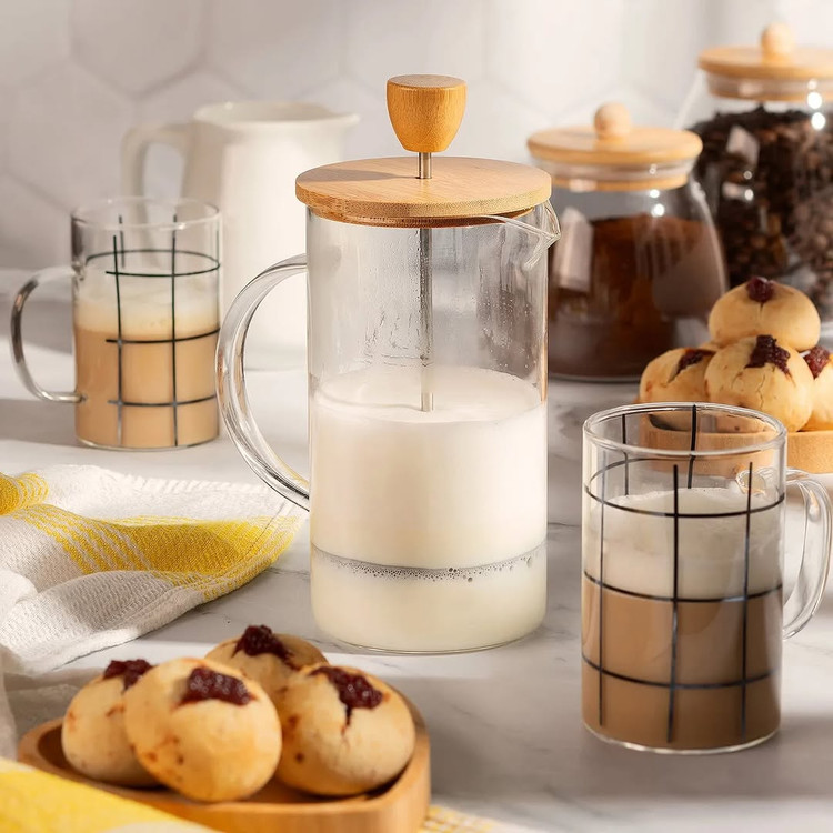 جنس فرنچ پرس درب چوبی از شیشه شفاف بوده و دارای درب چوبی می باشد.